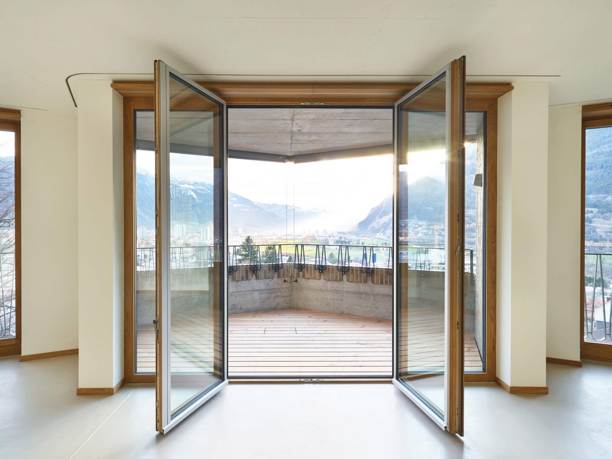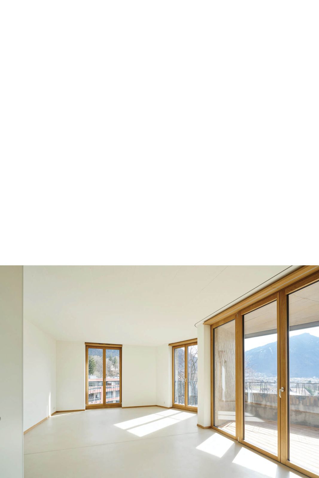 Die beiden Punkthäuser profitieren von der schönen Hanglage mit ausserordentlicher Sicht talwärts und an die umgebenden Berghänge. Ein grosszügiges Treppenhaus erschliesst je drei Wohnungen pro Geschoss. Diese sind jeweils über Eck angelegt und bieten so eine mehrseitige Ausrichtung und ausgiebige Besonnung.