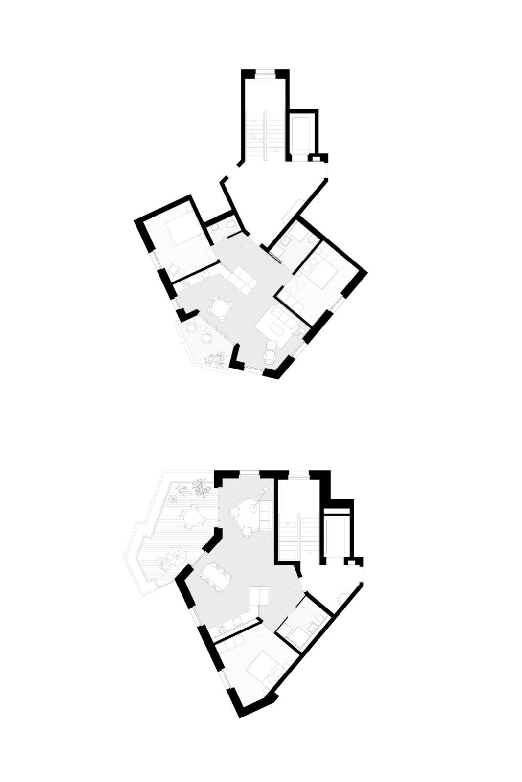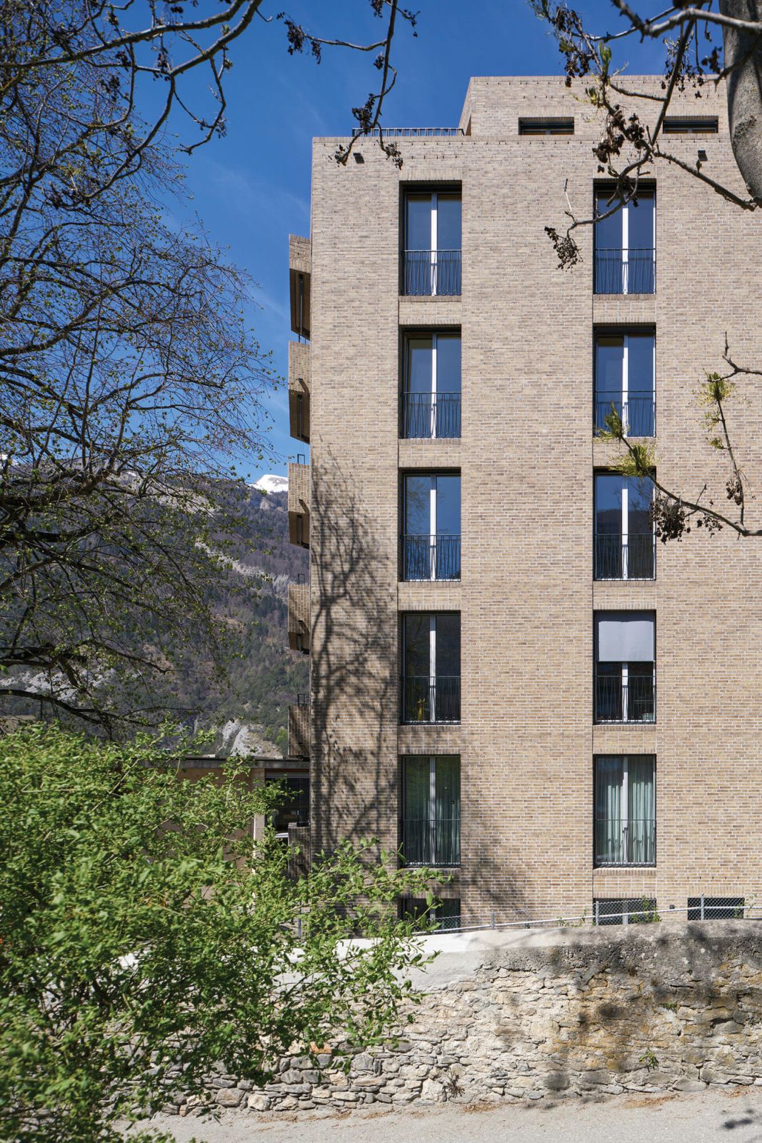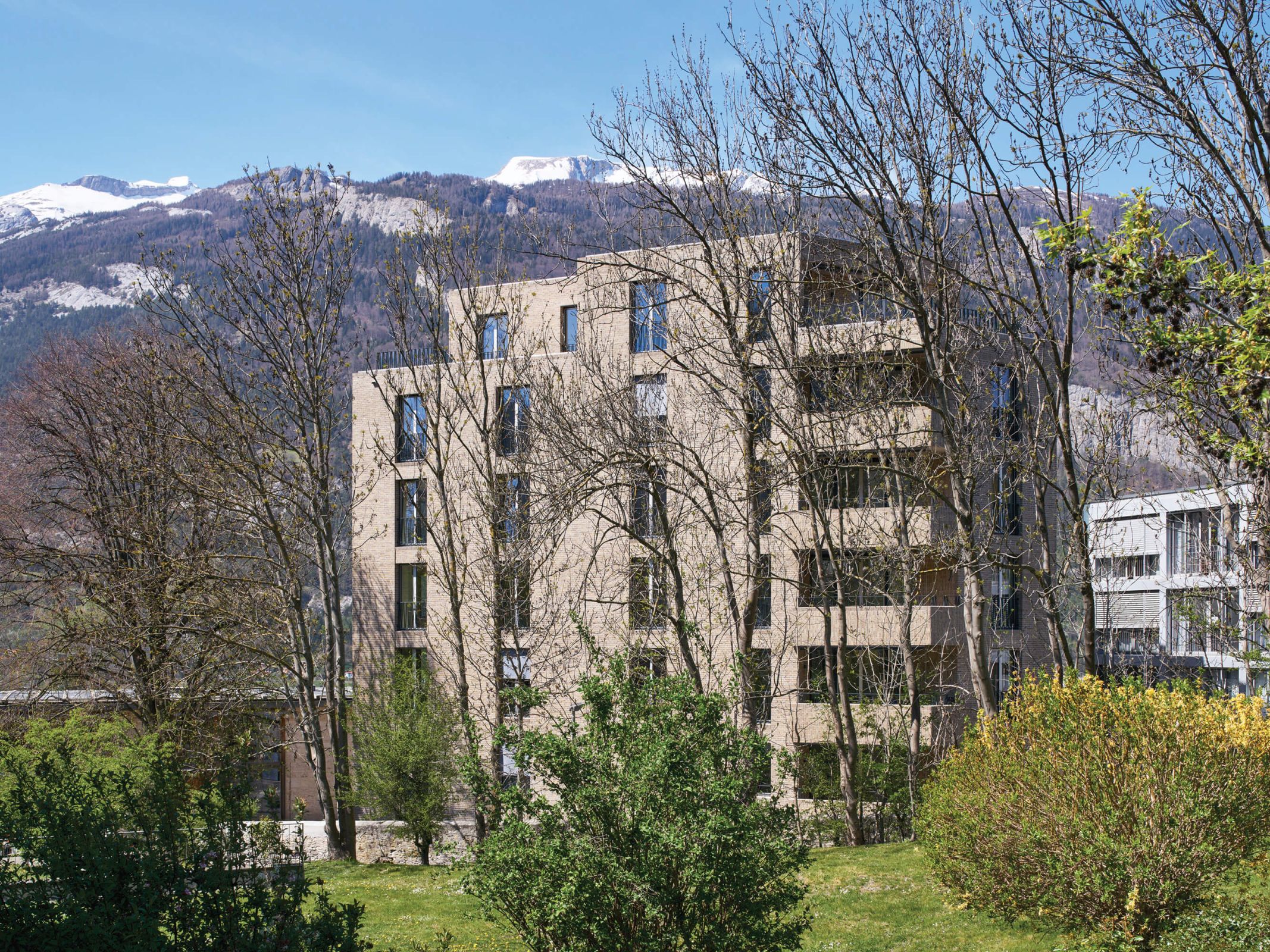Wie von der Natur gesetzte Findlinge fügen sich die beiden Punkthäuser in die Gesamtanlage des Seniorenzentrums Cadonau in Chur ein. Mit respektvollem Abstand gegenüber dem Bestand ergänzen sie das Wohnangebot mit 34 altersgerechten Wohnungen und einem Studio. Ihre dreieckige Figur wird durch wichtige Blickbezüge und bestehende Grenzen definiert. Dank des kleinen Footprints der beiden Gebäude kann die wunderbare Gartenanlage weiterhin erlebt werden. Die vertikale Höhenentwicklung der Bauten steht im Kontrast zum langgezogenen bestehenden Flachbau und respektiert den davor liegenden Umschwung mit den Obstbäumen.