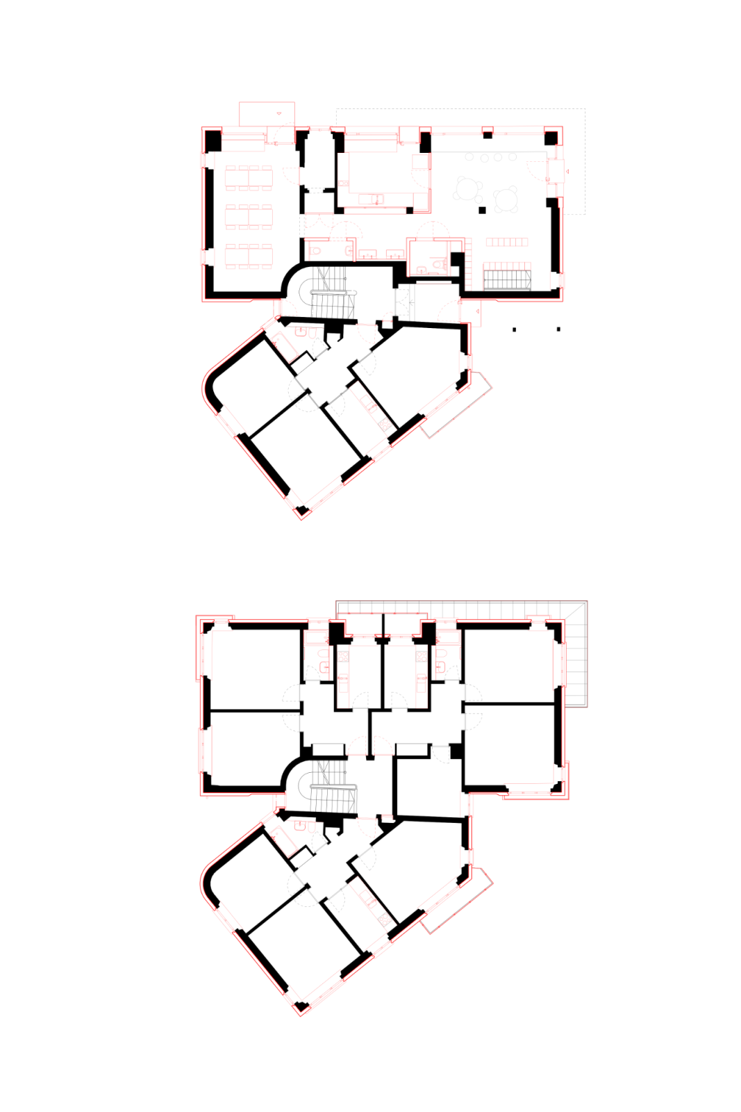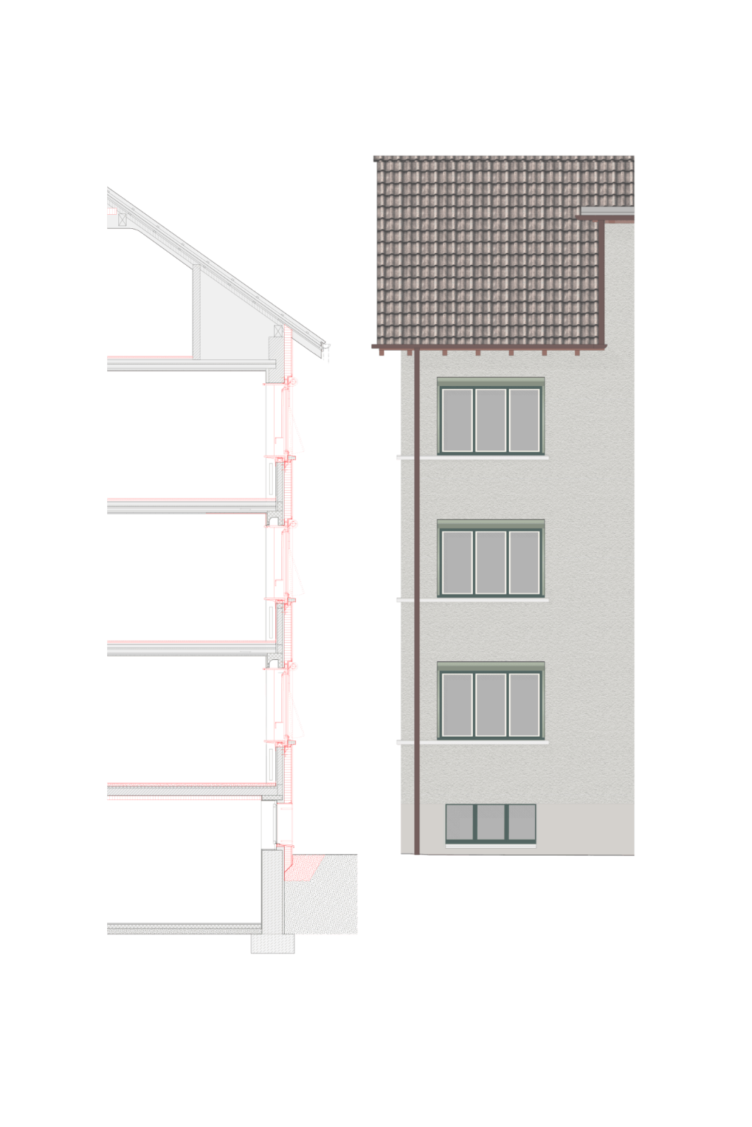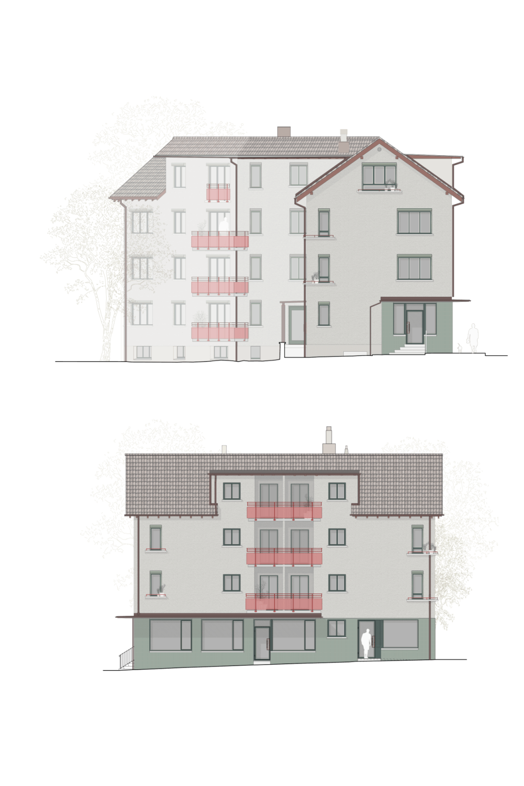 Für die Instandsetzung gilt als oberste Priorität der Erhalt von möglichst günstigem Wohnraum. Mit reduzierten Eingriffen möchten wir vorhandene Qualitäten beibehalten und in sensibler Symbiose mit dem Bestand und seiner Umgebung neue Qualitäten ermöglichen.