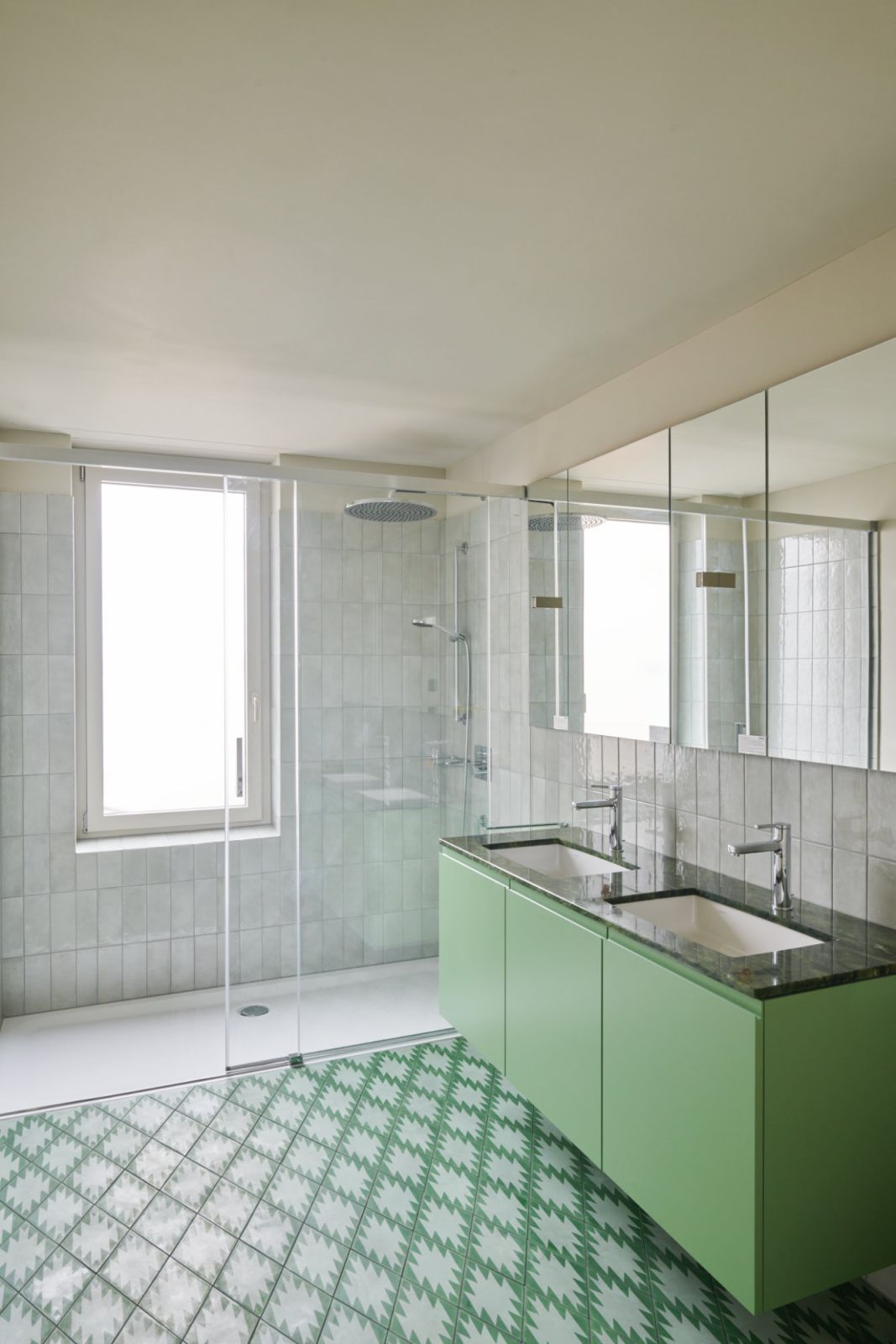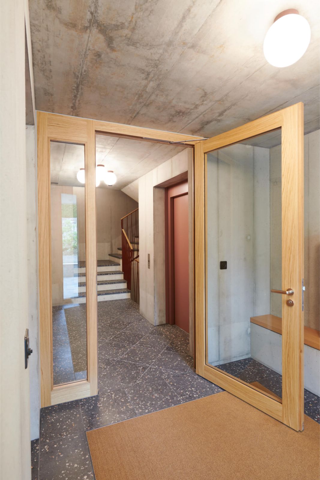Die Kompaktheit des Volumens, die langlebige Konstruktion mit Zweischalenmauerwerk und der hochwertige Kratzputz der Fassade ermöglichen ein ökonomisch und ökologisch nachhaltiges Projekt. Ein effizientes Energiekonzept mit Erdsonden und Photovoltaikanlage auf dem Dach ergänzt den zeitgemässen Neubau.