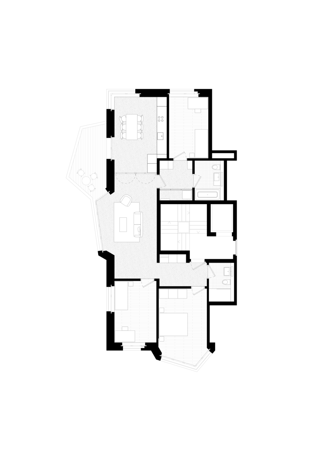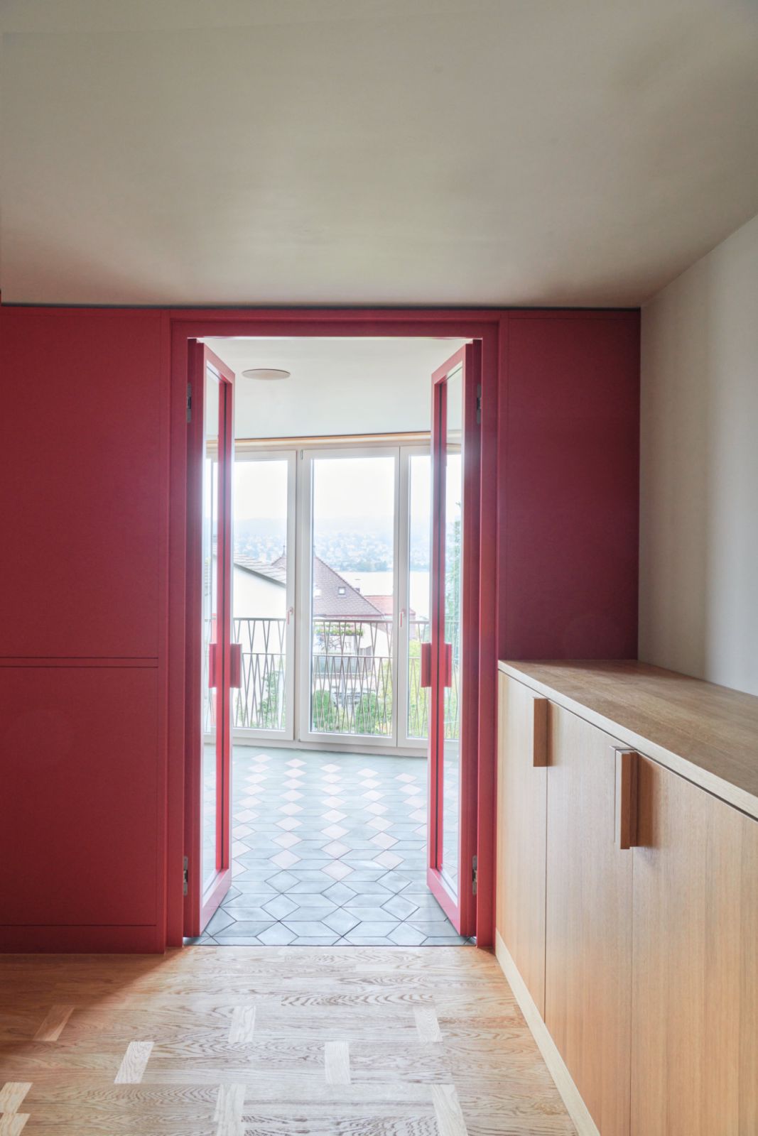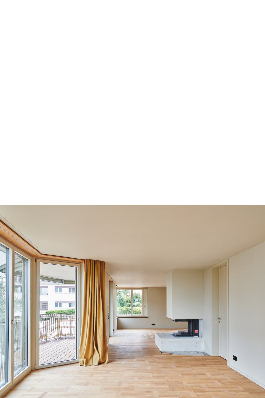 Dadurch kann auf der Ostseite bereits eine kleine Gartenwohnung freigespielt werden. Auf den oberen Geschossen erstrecken sich die Wohnungen von Ost nach West, von der See- zur Abendsonnenseite. Dabei profitieren zwei weitere Wohnungen im 1. Obergeschoss von einem privaten Gartensitzplatz; insgesamt werden sieben Wohnungen erstellt.