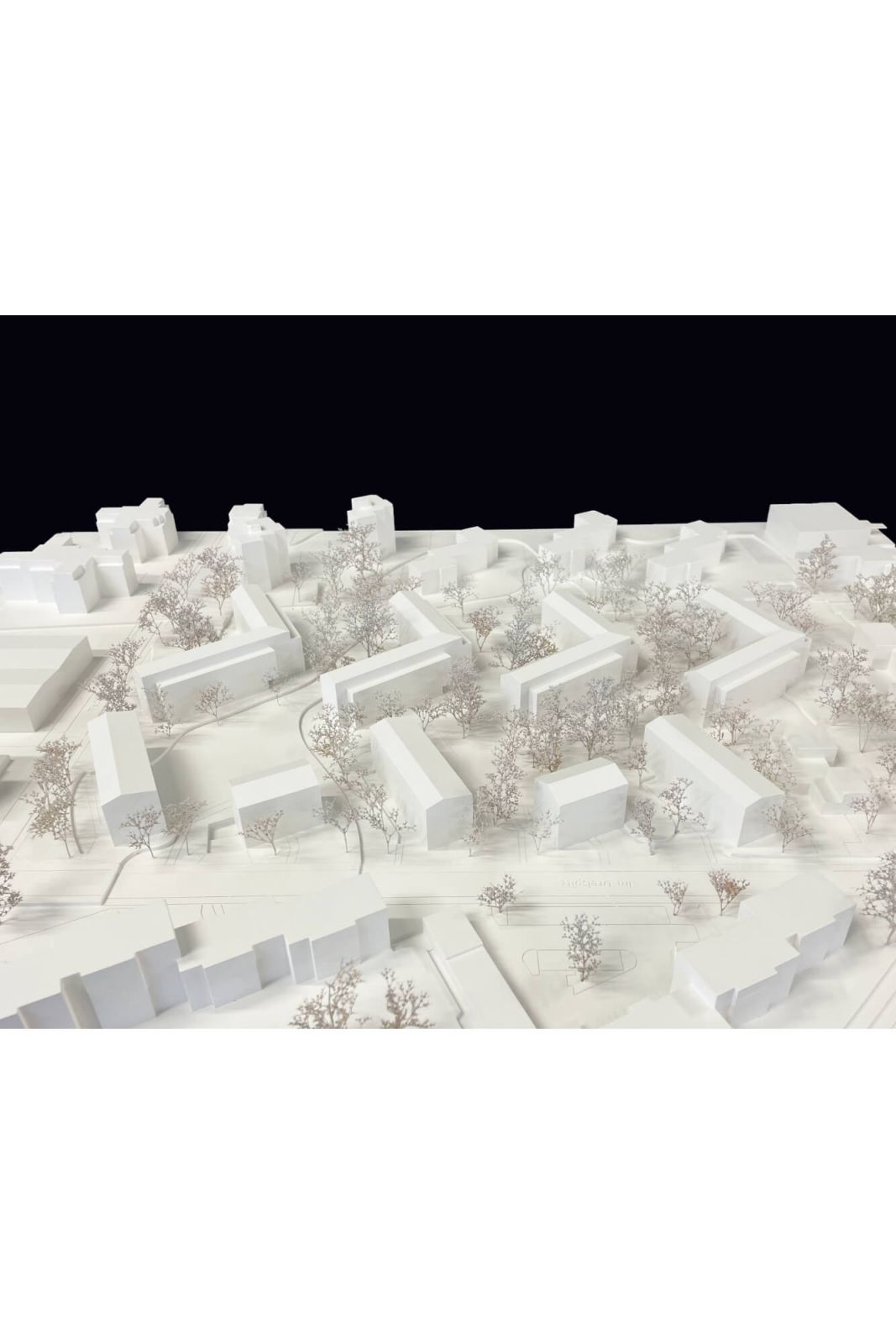 Die neuen winkelförmigen Bauten greifen die Ausrichtung und Körnung der bestehenden Zeilen auf und schreiben den ursprünglichen Städtebau weiter. In Kombination mit den sanierten und aufgestockten Bestandsbauten entsteht ein zusammenhängendes Ensemble, das sich selbstverständlich in den Kontext einfügt und gleichzeitig neue räumliche Bezüge schafft. Durch die präzise Setzung der Baukörper bleibt die Massstäblichkeit der Siedlung erhalten und wird behutsam weiterentwickelt.